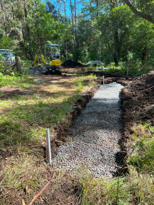 As groundwater accumulates in the surrounding soil, it naturally flows into the gravel trench, enters the perforated pipe, and is redirected away from critical areas to a designated safe discharge point. This system functions efficiently below ground level, eliminating the need for visible grates or channels, making it especially advantageous in clay-heavy soils, which are prevalent in Wollongong and the broader Illawarra region.